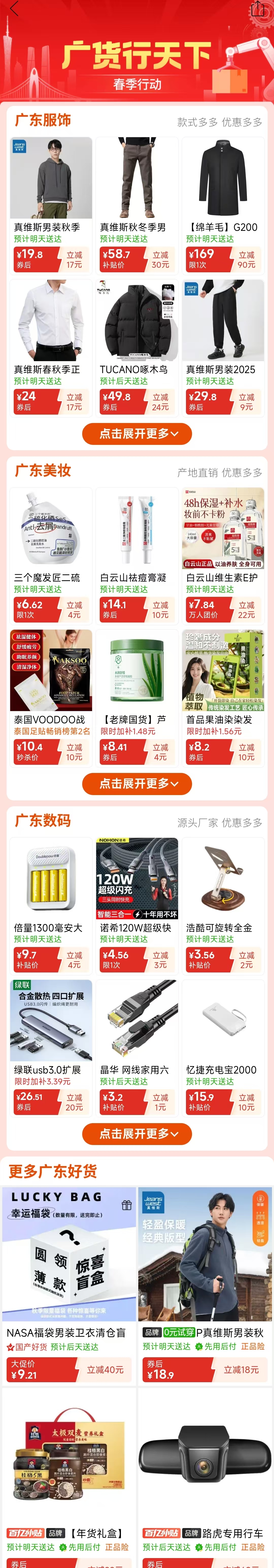 在上线活动专区的同时,各大电商平台也都纷纷投入优惠券和补贴,为“广货”的热度加码。据介绍,全国消费者进入唯品会APP,搜索“广货行天下”即可进入活动页面抽取至高100元的平台优惠券,拼多多的活动专区就为消费者提供了砸金蛋、整点抢券、每200减30、三单挑战3折等多个促销活动,而京东更是为各式各样的“广货”提供了单品至高1000元的补贴。