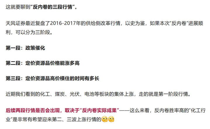 去年反内卷兴起的时候,我当时特别提到“反内卷的三段行情”: