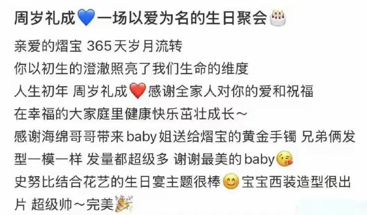 第一次热络上热搜是11月11号,黄晓明的表弟媳的儿子周岁宴,baby没办法到现场,让小海绵帮她拿金手镯去送礼。本来这事外人是不知道的,但是这位妯娌却恨不得让全世界都知道,baby和黄家人感情还非常好。